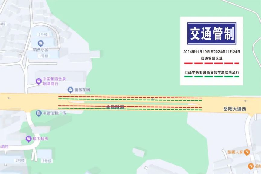 二、绕行指南 1. 由西向东行驶的车辆: - 可选择从岳阳大道金鹗隧道西出口驶出,沿岳阳市大道绕行至金鹗隧道东出口。 - 也可选择从岳阳市大道绕行至岳阳市二环线,再从二环线绕行至金鹗隧道东出口。