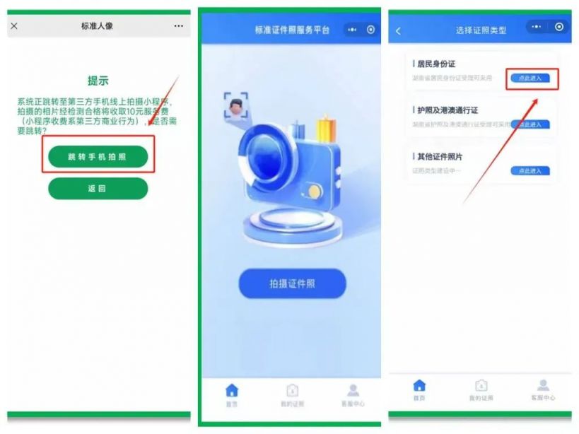 七、用户选择手机拍照或到照相馆拍照时,需交纳相关费用。收费为拍摄服务提供方的市场化商业行为。公安机关居民身份证受理点、出入境窗口仍提供免费照相服务。