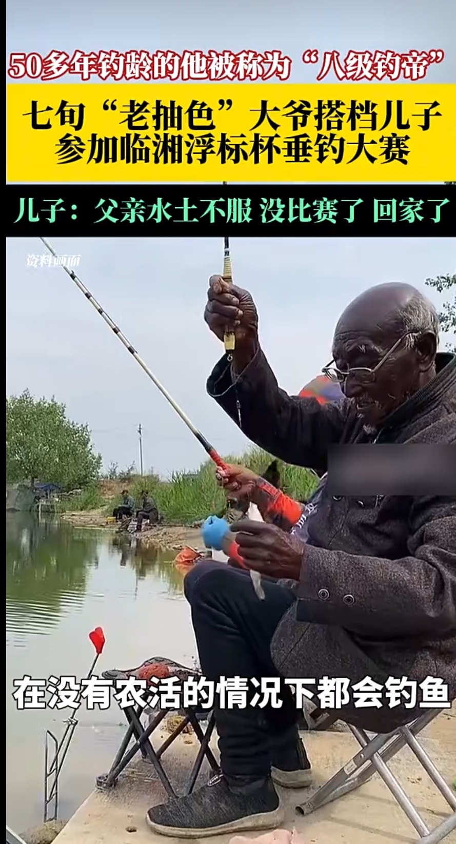 其子透露,父亲长期户外劳作和钓鱼导致肤色黝黑,退赛是身体原因。